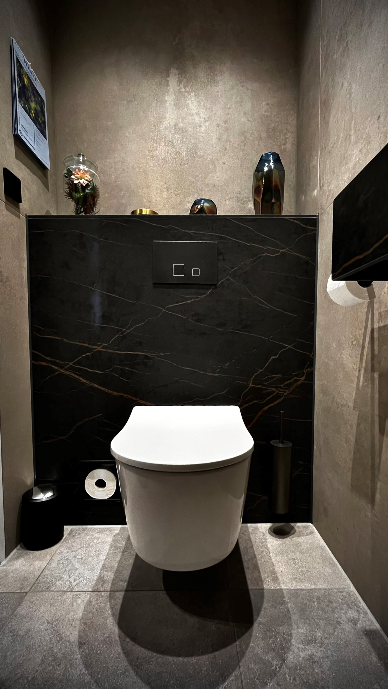 Compacte Badkamer VolendamBij de klant in Huysch | Compacte badkamer Volendam Onlangs heeft het TH-Team weer een prachtige, warme en compacte badkamer opgeleverd in Volendam. De mooie warme kleuren van de tegels en van het meubel in combinatie met de mat zwarte accenten van de kranen, de accessoires en het toilet maken deze badkamer tot een gezellig en eigentijds geheel. De slimme indeling zorgt ervoor dat zelfs in een compacte ruimte alles aanwezig is voor ultiem comfort. Terug naar overzichtSanitair inspiratie TH-Badkamer Amsterdam Bekijk project Design Toilet in Amsterdam Bekijk project Klein Maar fijn! Een stijlvolle badkamer in hartje Volendam Bekijk project Warme en Luxe badkamer Amsterdam Bekijk project Design Badkamer met Karakter in Halfweg Bekijk project