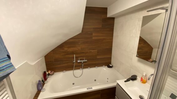 Natuurlijke wellness badkamerDeze prachtige badkamer heeft veel natuurlijke elementen. Zo wordt er gebruik gemaakt van marmerlook wandtegels en houtlook vloertegels. Alle tegels zijn keramisch zodat het gemakkelijk schoon te houden blijft.Naast deze tegels kenmerkt deze badkamer zich door haar wellness element: het bad. Dit bad met systemen (bubbelbad) is ideaal voor iedereen die van Wellness houdt. Er wordt namelijk een rustmoment in de badkamer gecreëerd. Wilt u meer weten? Maak dan eens een vrijblijvende afspraak! Terug naar overzichtSanitair inspiratie TH-Badkamer Amsterdam Bekijk project Design Toilet in Amsterdam Bekijk project Klein Maar fijn! Een stijlvolle badkamer in hartje Volendam Bekijk project Warme en Luxe badkamer Amsterdam Bekijk project Design Badkamer met Karakter in Halfweg Bekijk project